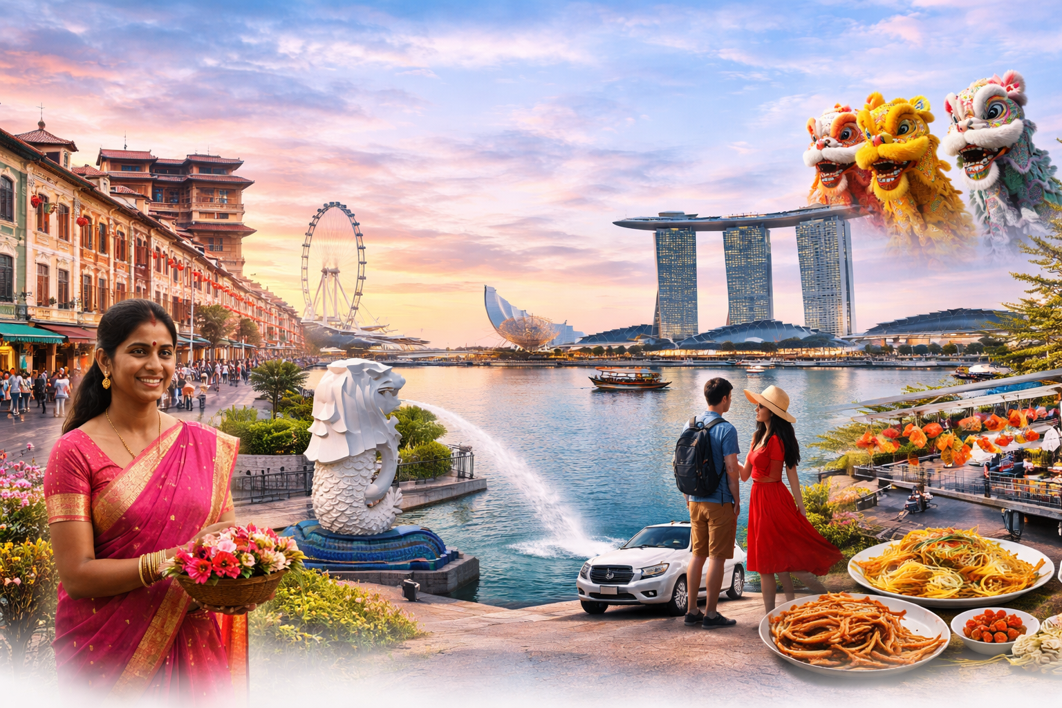 Morning in Chinatown (Buddha Tooth Relic Temple), then Little India and Kampong Glam (Sultan Mosque, Haji Lane). Lunch at a classic hawker centre (Maxwell or Lau Pa Sat). Evening at Clarke Quay for riverside dining.